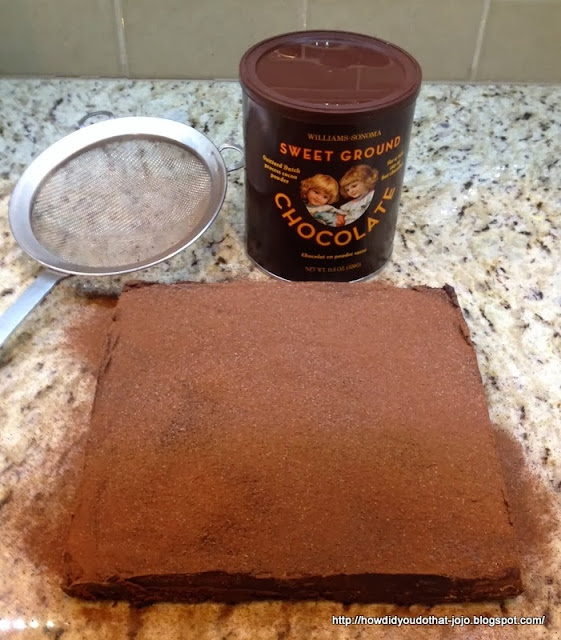 In the photo showing ingredients I showed unsweetened chocolate for the dusting but after some overnight thought I decided that since the ingredients for these blocks were unsweetened and semi-sweet chocolate that I did not want to add more unsweetened chocolate so I used some sweet chocolate. Just a personal preference.